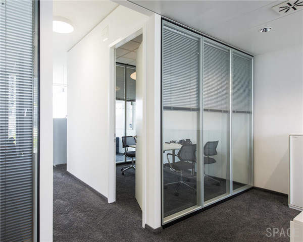 电动百叶隔断采用进口电机作为核心,每一空玻璃间隔都采用一套独立的电路控制系统,能分别控制每一挂百叶帘,也可以整体控制整道墙和整个房间。